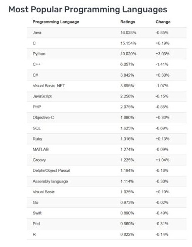 بعضی از رایجترین زبانهای برنامه نویسی، عبارتند از: